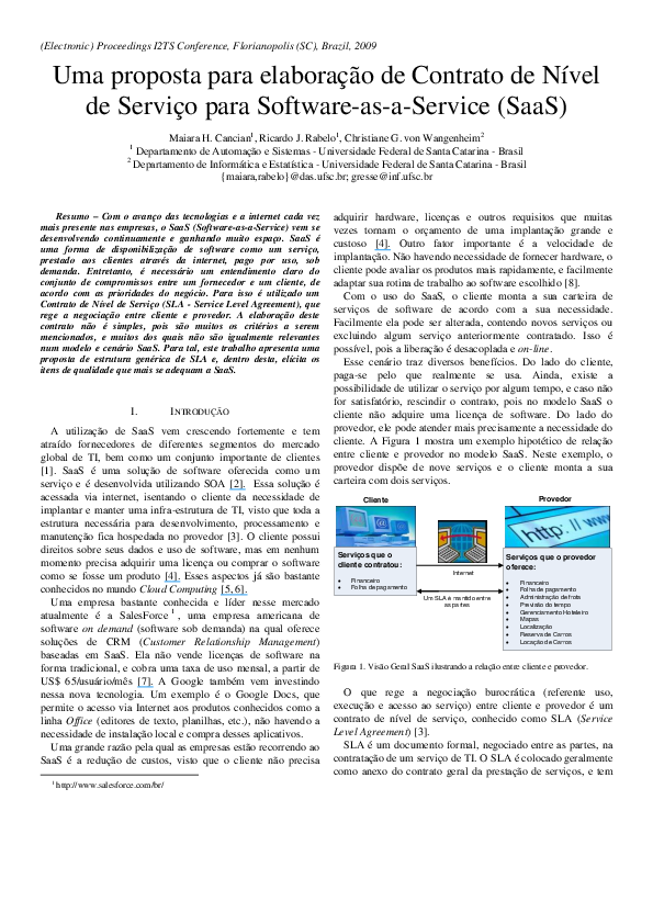 Pdf Uma Proposta Para Elaboracao De Contrato De Nivel De Servico