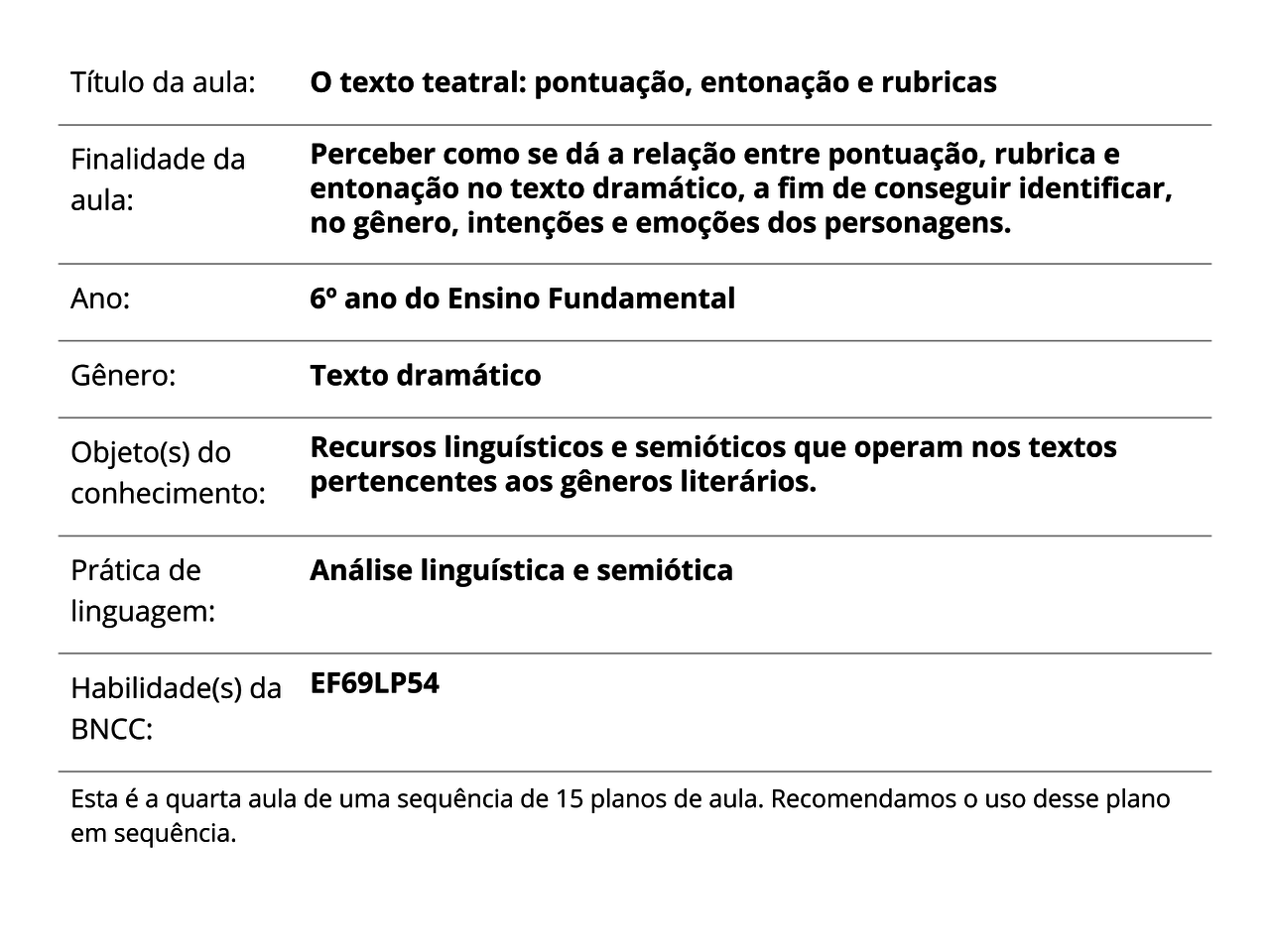 Plano De Aula 6º Ano Lingua Portuguesa O Texto Teatral