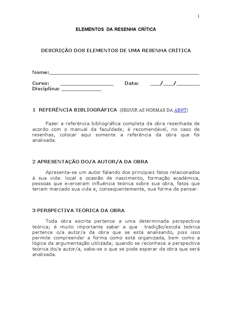 Elementos Da Resenha Critica Descricao Dos Elementos De Uma