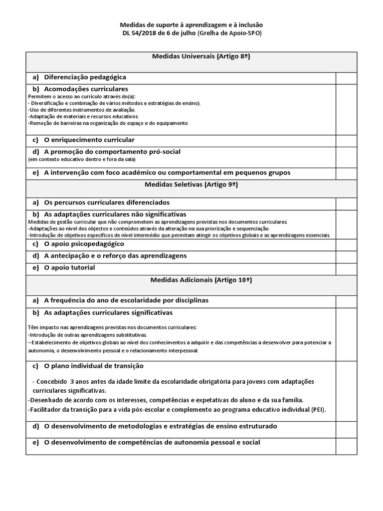 Medidas De Suporte A Aprendizagem E A Inclusao Sugestoes De