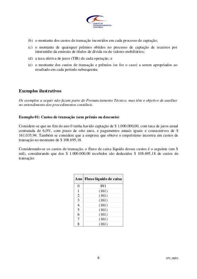 Pronunciamento Tecnico Cpc 08 R1 Custos De Transacao E Premios