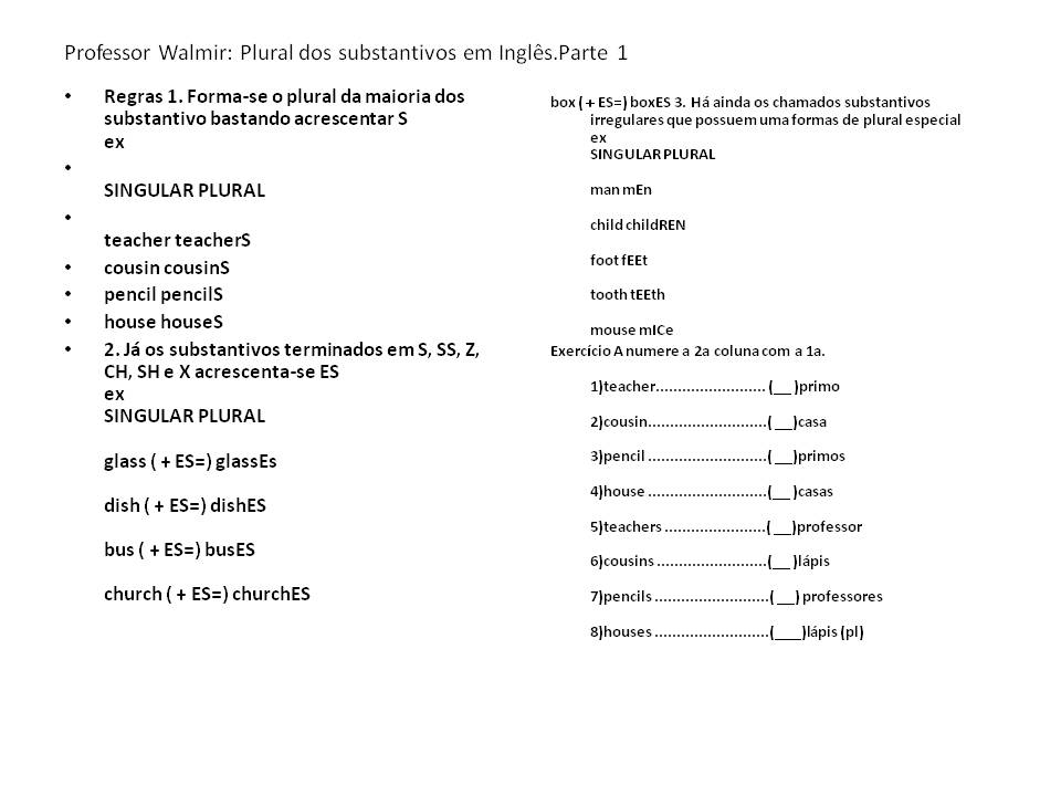 Professor Walmir Bahia English 3 Plural Dos Substantivos