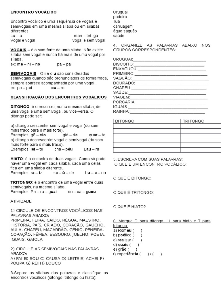 Atividades De Ditongo Tritongo E Hiato So Escola