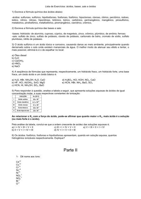 Lista De Exercicios Acidos Bases Sais E Oxidos Pdf Download Gratis