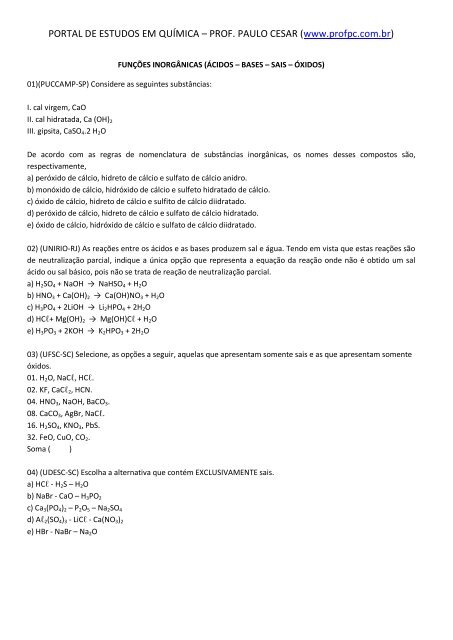 Portal De Estudos Em Quimica Prof Paulo Cesar