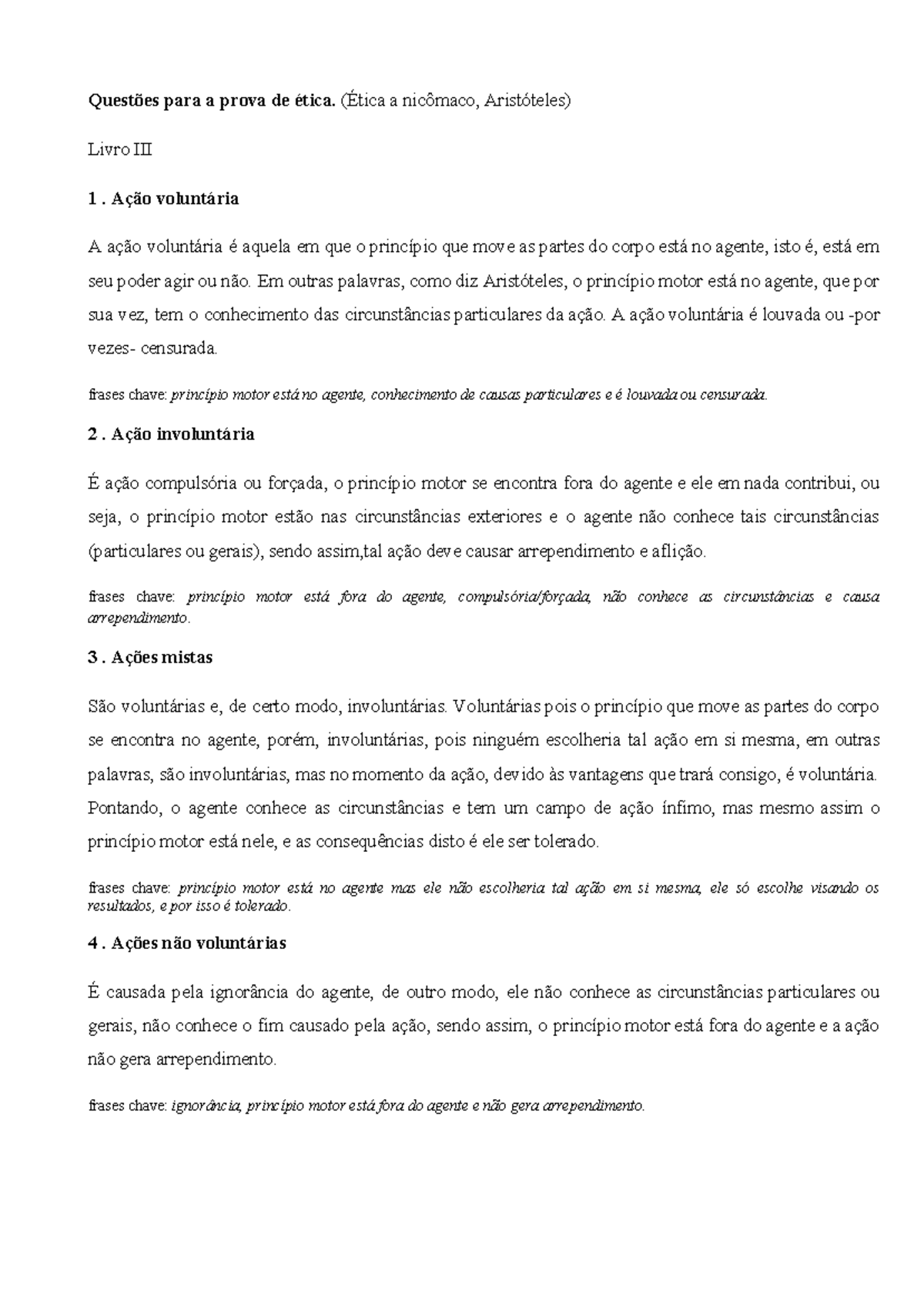 Etica A Nicomaco Aristoteles Regina Questoes Livros Ii Vi E