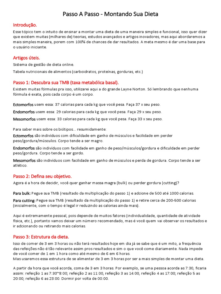Passo A Passo Montando Sua Dieta Pdf Caloria Proteinas