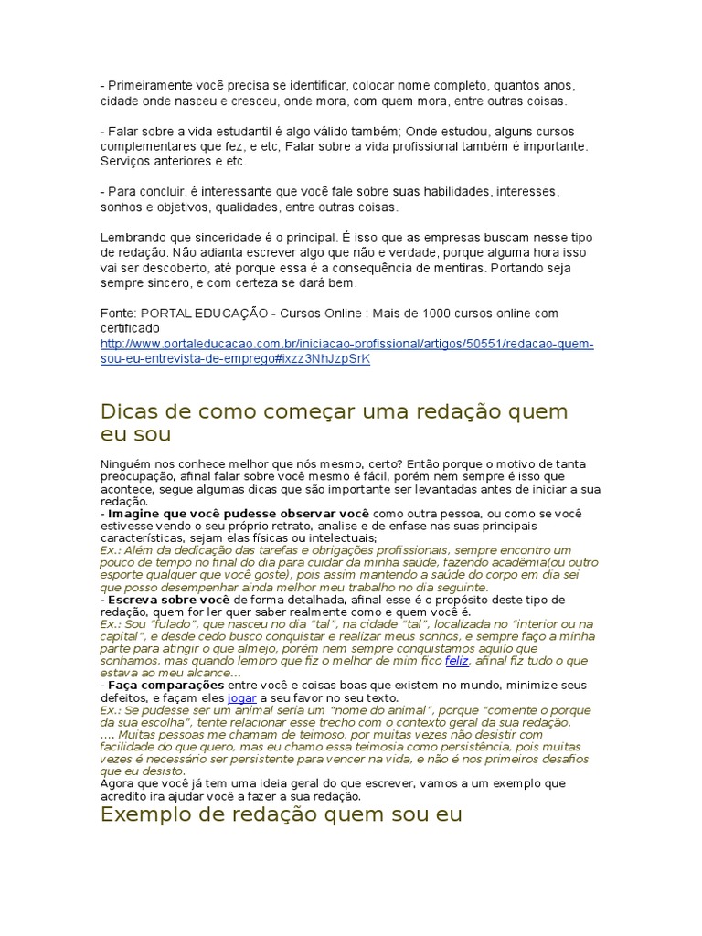 Exemplo De Redacao Quem Sou Eu Pronta Varios Exemplos