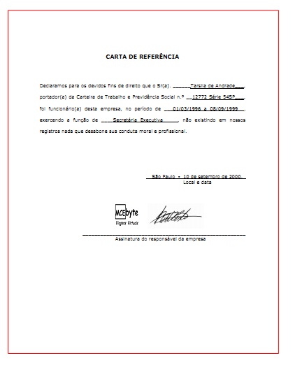 Best Quotes O Carta De Referencia Para Emprego De Baba