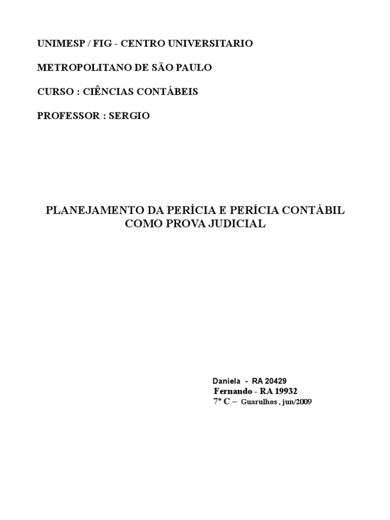 Trabalho Planejamento Da Pericia E Pericia Contabil Como