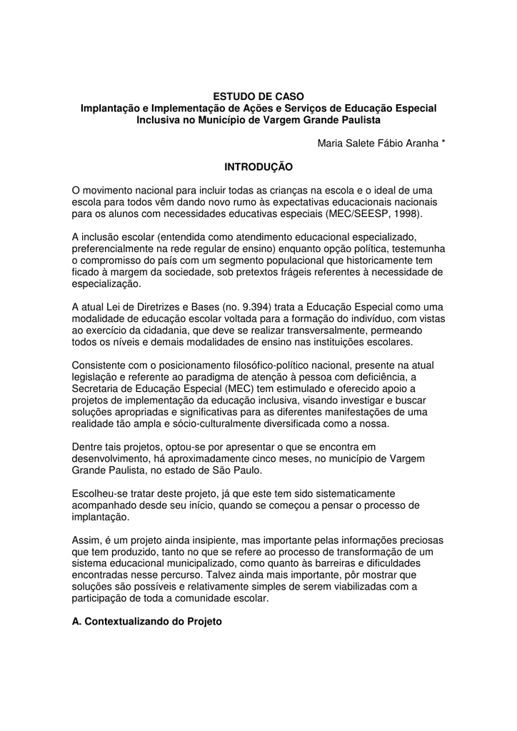 Estudo De Caso Educacao Especial