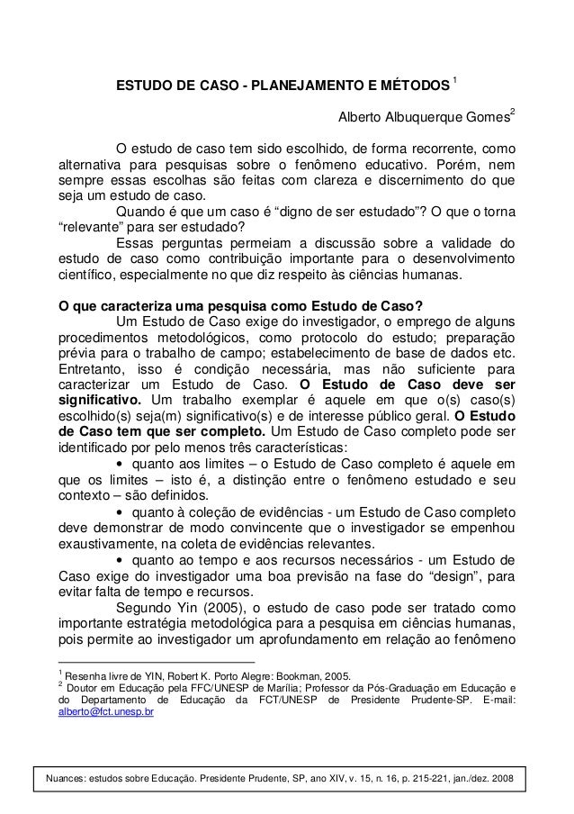 Estudo De Caso Planejamento E Metodos