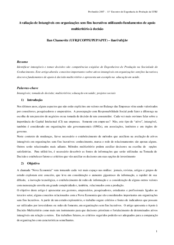 Pdf Avaliacao De Intangiveis Em Organizacoes Sem Fins Lucrativos
