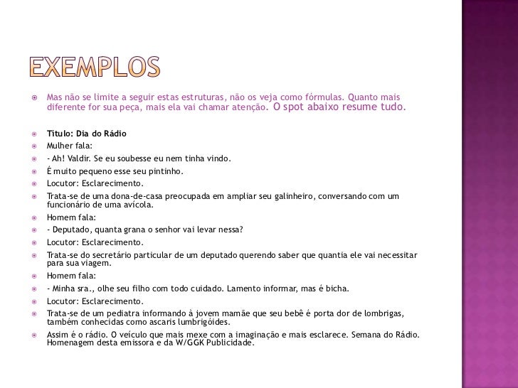 Exemplo De Texto Para Vinhetas Spots Propagandas De Radio E