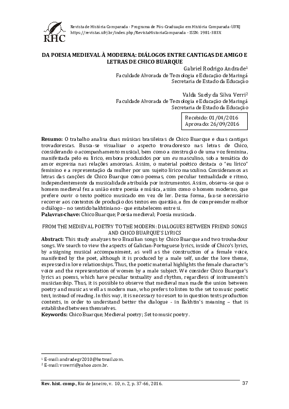 Pdf Da Poesia Medieval A Moderna Dialogos Entre Cantigas De