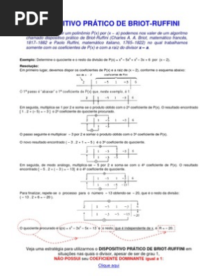 Diversas informações sobre Dispositivo Pratico De Briot Ruffini Exemplos.