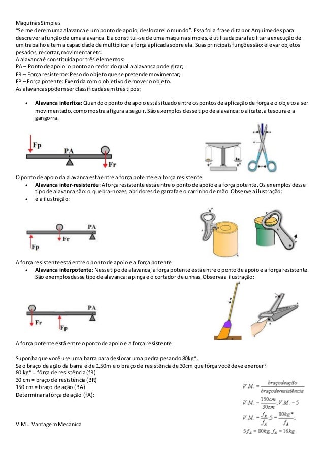 Maquinas Simples Qualquer Instrumento Que Nos Ajude A Trabalhar E