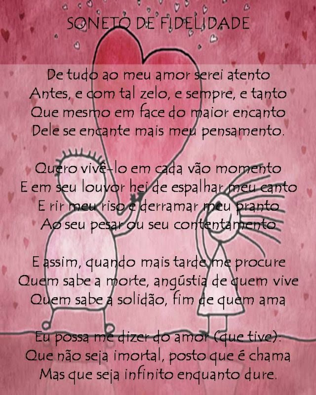 Soneto da fidelidade vinicius de moraes de tudo ao meu amor serei atento antes e com tal zelo e sempre e tanto que mesmo em face do maior encanto dele se encante mais meu pensamento.