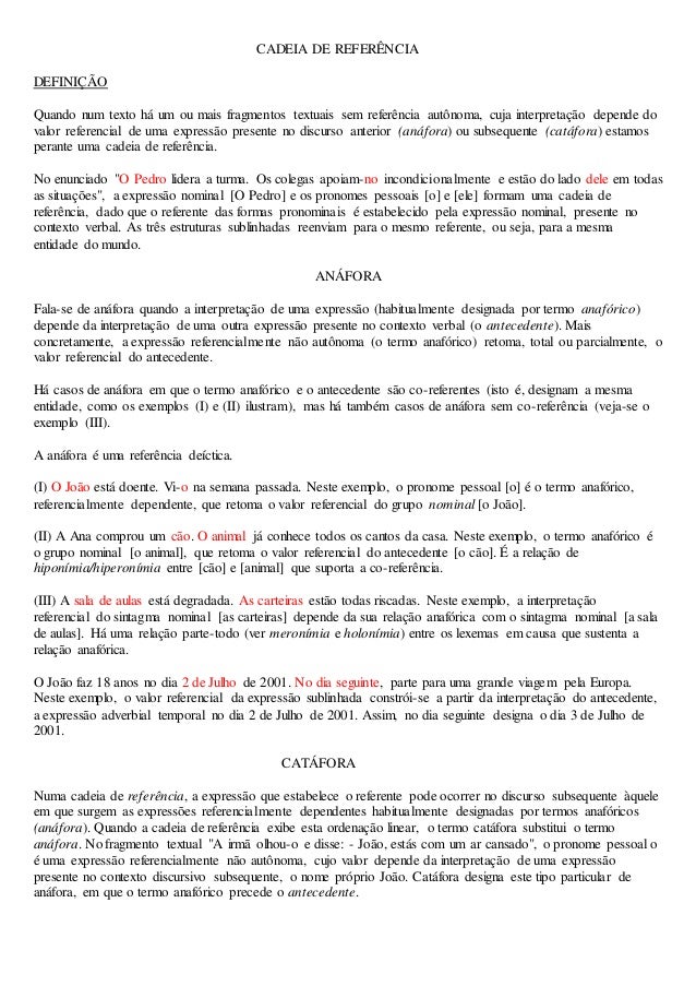 Qual A Diferenca Entre Anafora E Catafora Portugues Em Foco