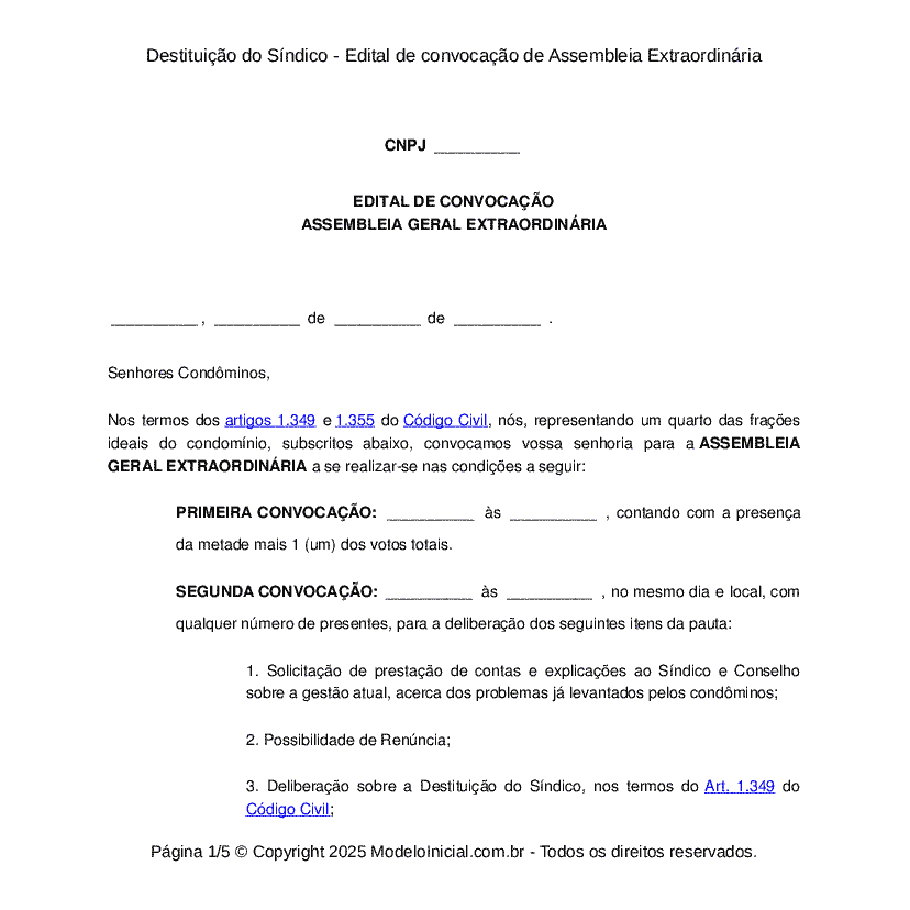 Modelo Destituicao Do Sindico Edital De Convocacao De Assembleia
