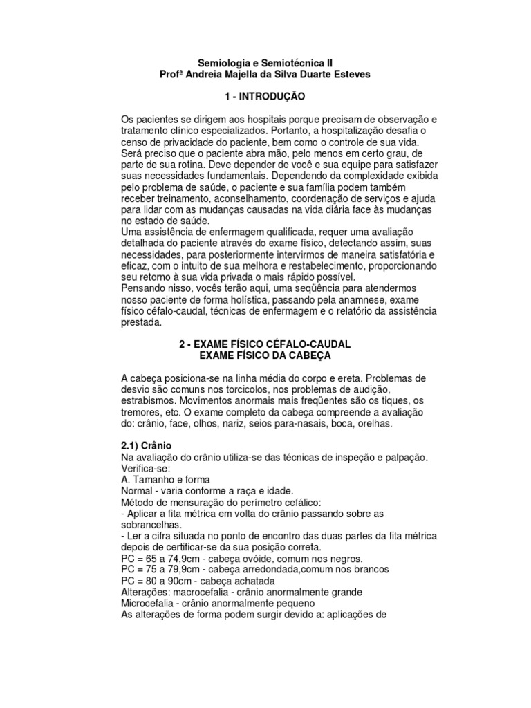 Exame Fisico Cefalo Caudal Anotacoes Enfermagem Docsity