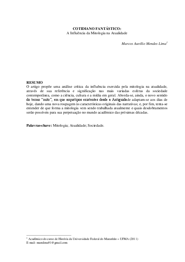 Pdf Cotidiano Fantastico A Influencia Da Mitologia Na Atualidade