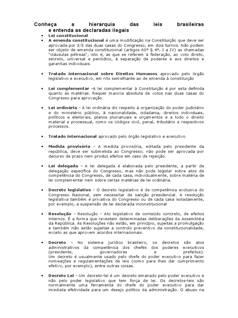 A Hierarquia Das Leis Brasileiras Lei Estatutaria Emenda