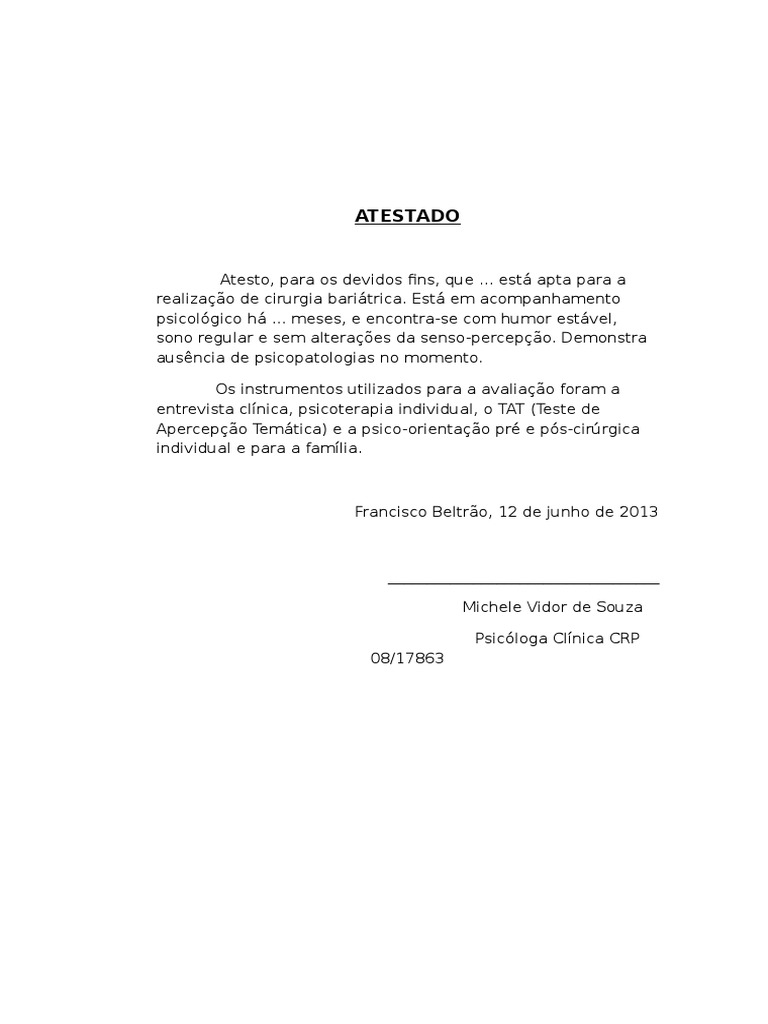 Exemplo De Laudo Psicologico Cirurgia Bariatrica Varios Exemplos