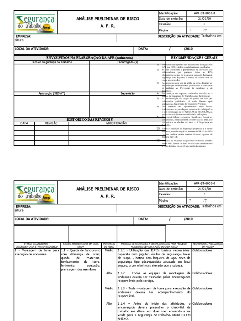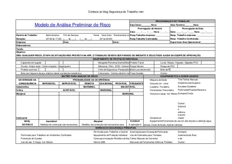Analise Preliminar De Risco Apr Modelo Em Branco