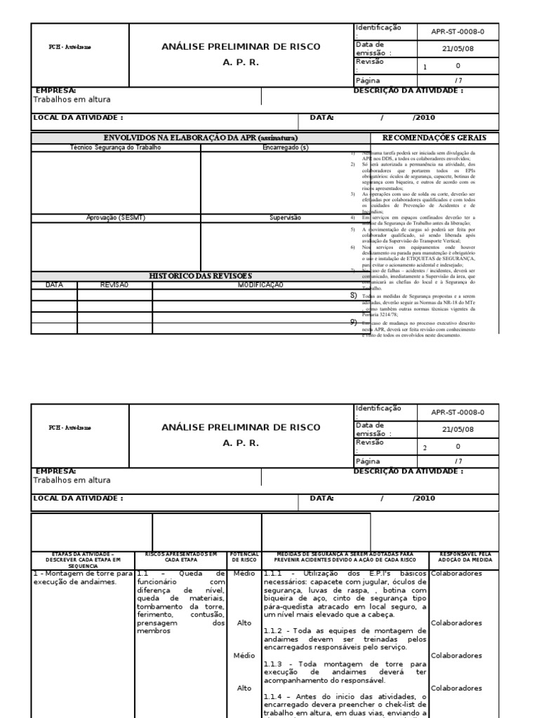 Esta é a discussão completa sobre exemplo de analise de risco para trabalho em altura. O administrador do blog de Novo Exemplo 07 January 2019 também coleta outras imagens relacionadas ao exemplo de analise de risco para trabalho em altura abaixo.