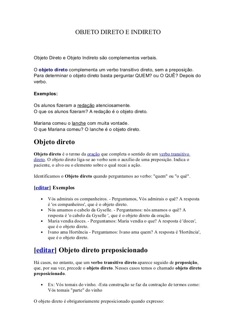 Objeto Direto E Indireto Exemplos E Exercicios Toda Materia