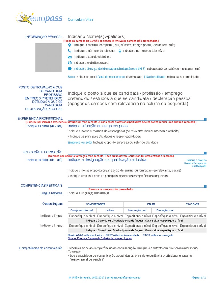 Instrucoes Para Utilizacao Do Curriculum Vitae Europass
