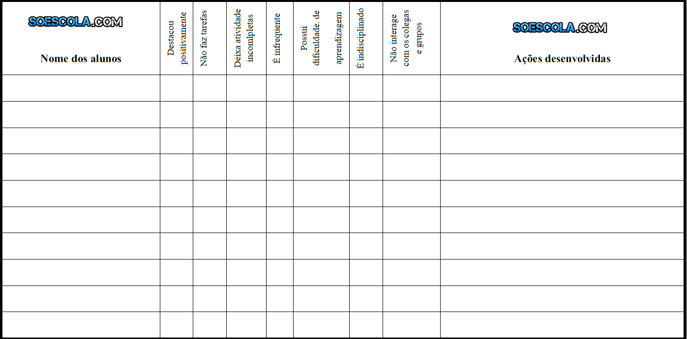 Modelo Ficha Para Conselho De Classe So Escola