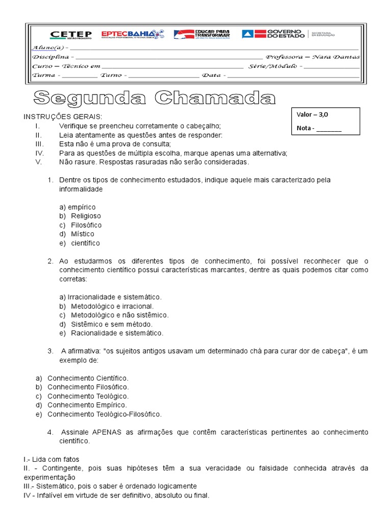 011 Segunda Chamada Tipos De Conhecimentos Conhecimento