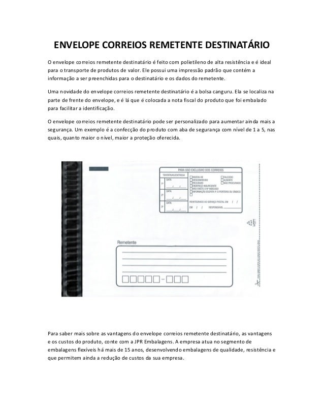 Envelope Correios Remetente Destinatario Da Embalagem Ideal