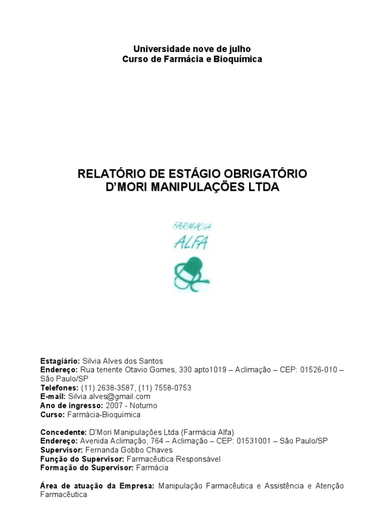 Relatorio Estagio Farmacia Manipulacao Farmaceutico Farmacia