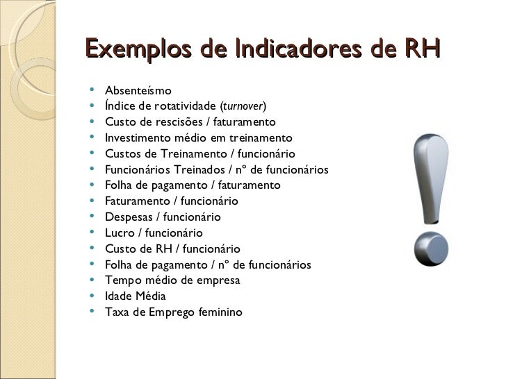 Exemplos de indicadores de desempenho rh.