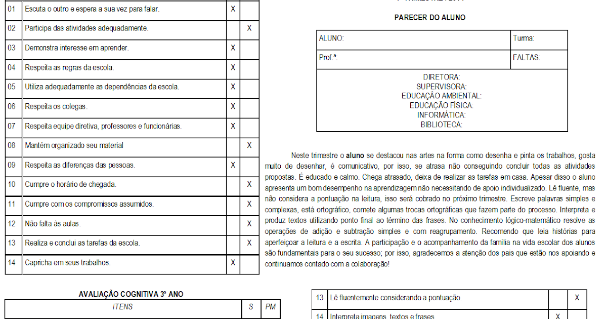 Esta é a discussão completa sobre exemplos de parecer descritivo anos iniciais. O administrador do blog de Novo Exemplo 05 January 2019 também coleta outras imagens relacionadas ao exemplos de parecer descritivo anos iniciais abaixo.
