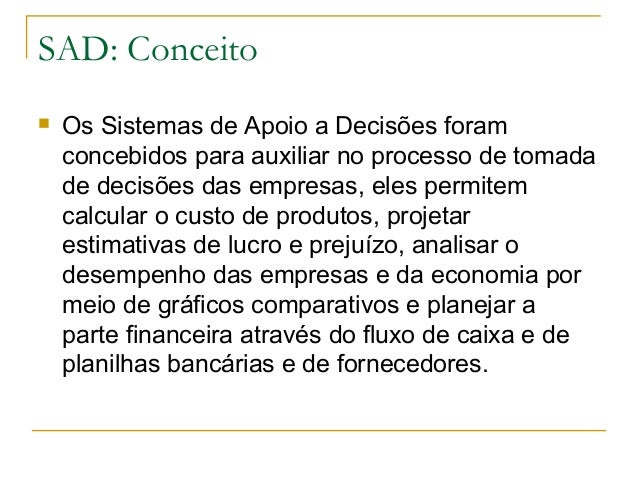 Abaixo estão as informações Sad Sistema De Apoio A Decisão Exemplo.