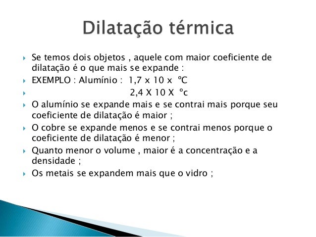 Aqui estão informações detalhadas sobre Tipos De Dilatação Termica E Exemplos.