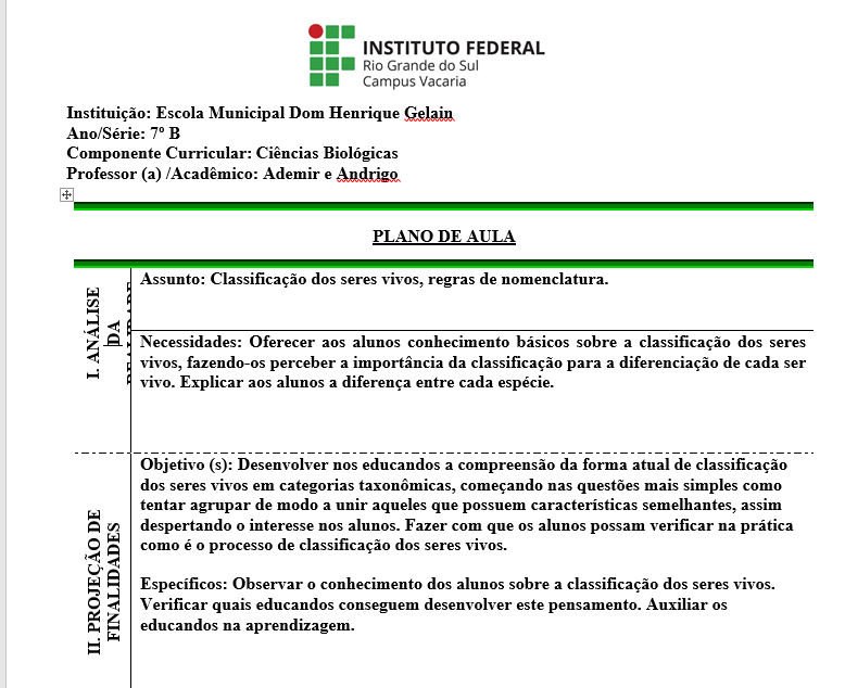 Plano De Aula Classificacao Dos Seres Vivos Regras De Nomenclatura