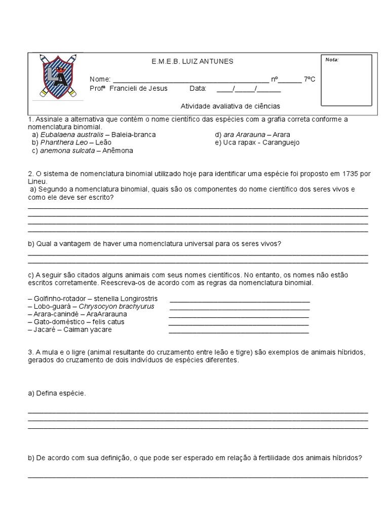 Completo com dados Exemplos De Nomenclatura Dos Seres Vivos.
