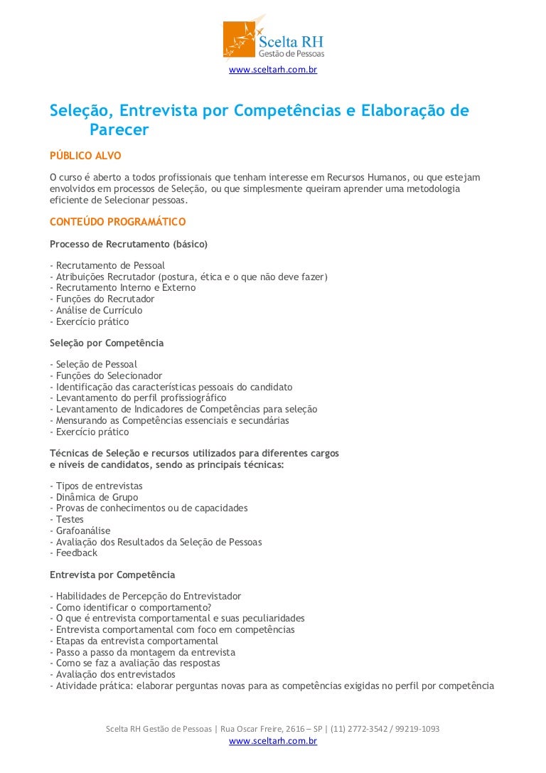 Selecao Entrevista Por Competencias E Elaboracao De Parecer S