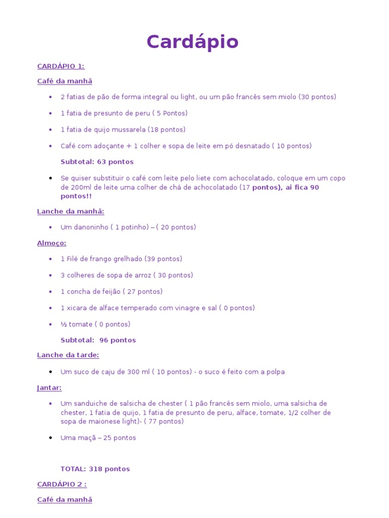 Cardapio Da Dieta Dos Pontos Patricinha Esperta