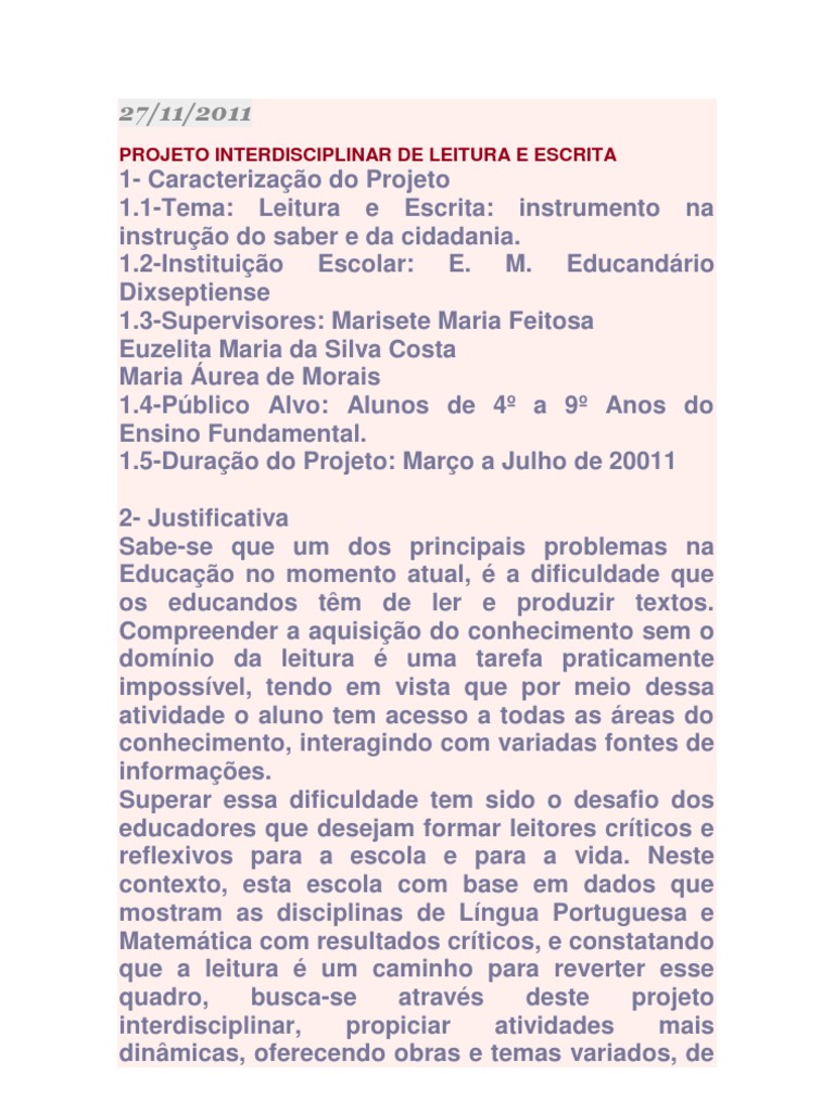 Revisões sobre Exemplos De Projetos Pedagogicos Para O Ensino Fundamental.