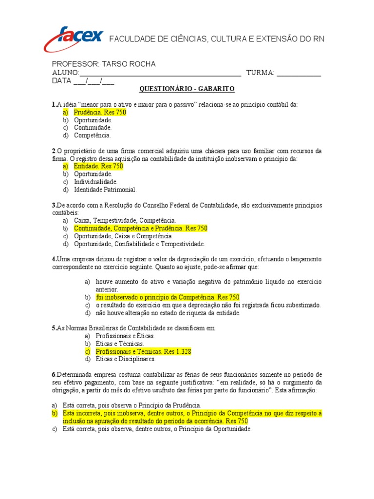 Questoes Teoria Principios Gab Principios Contabeis Geralmente
