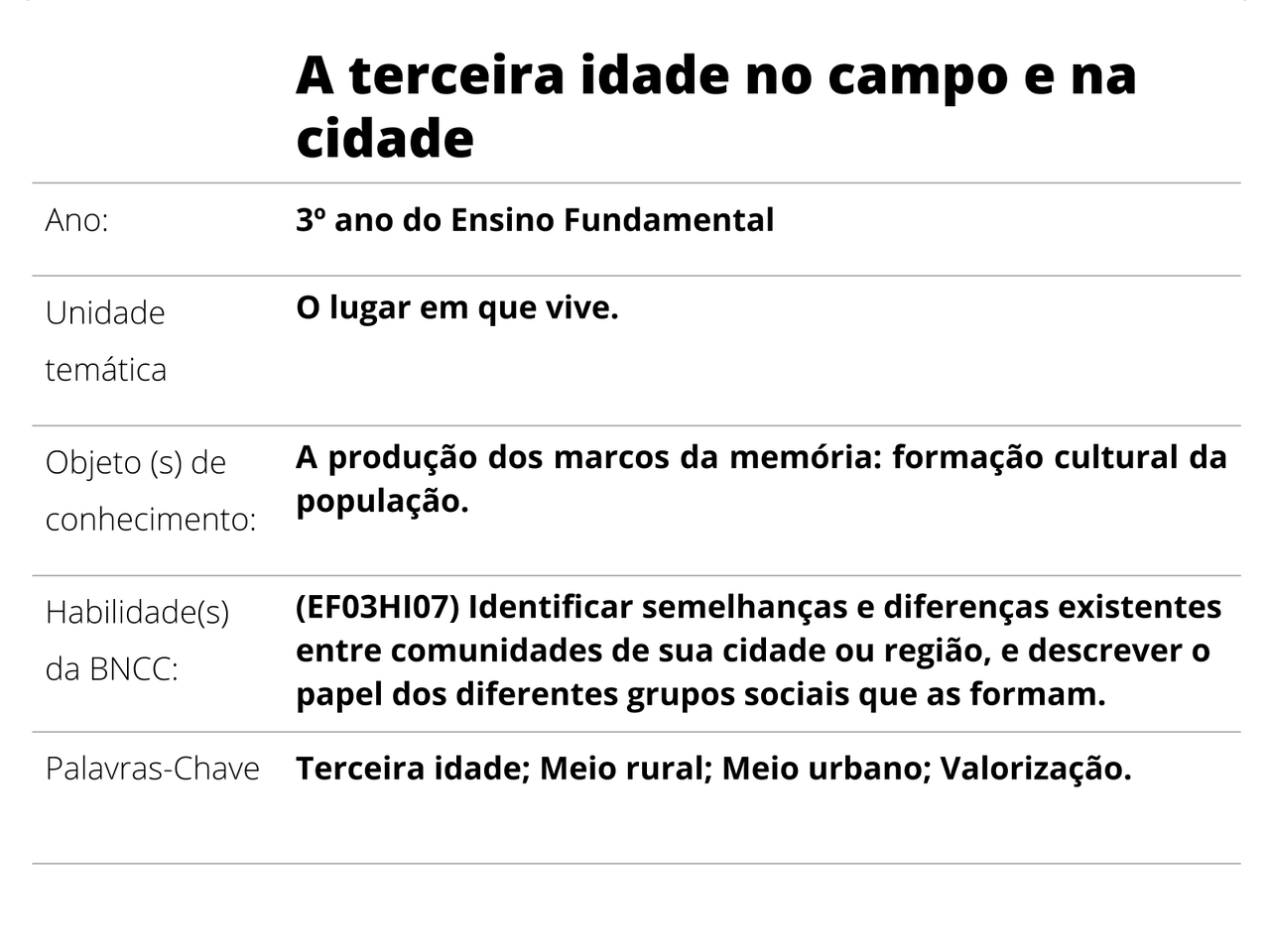 Plano De Aula 3º Ano Historia A Terceira Idade No Campo E Na
