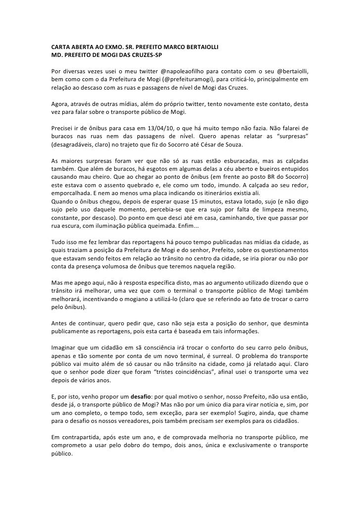 Carta Aberta Ao Prefeito Marco Bertaiolli