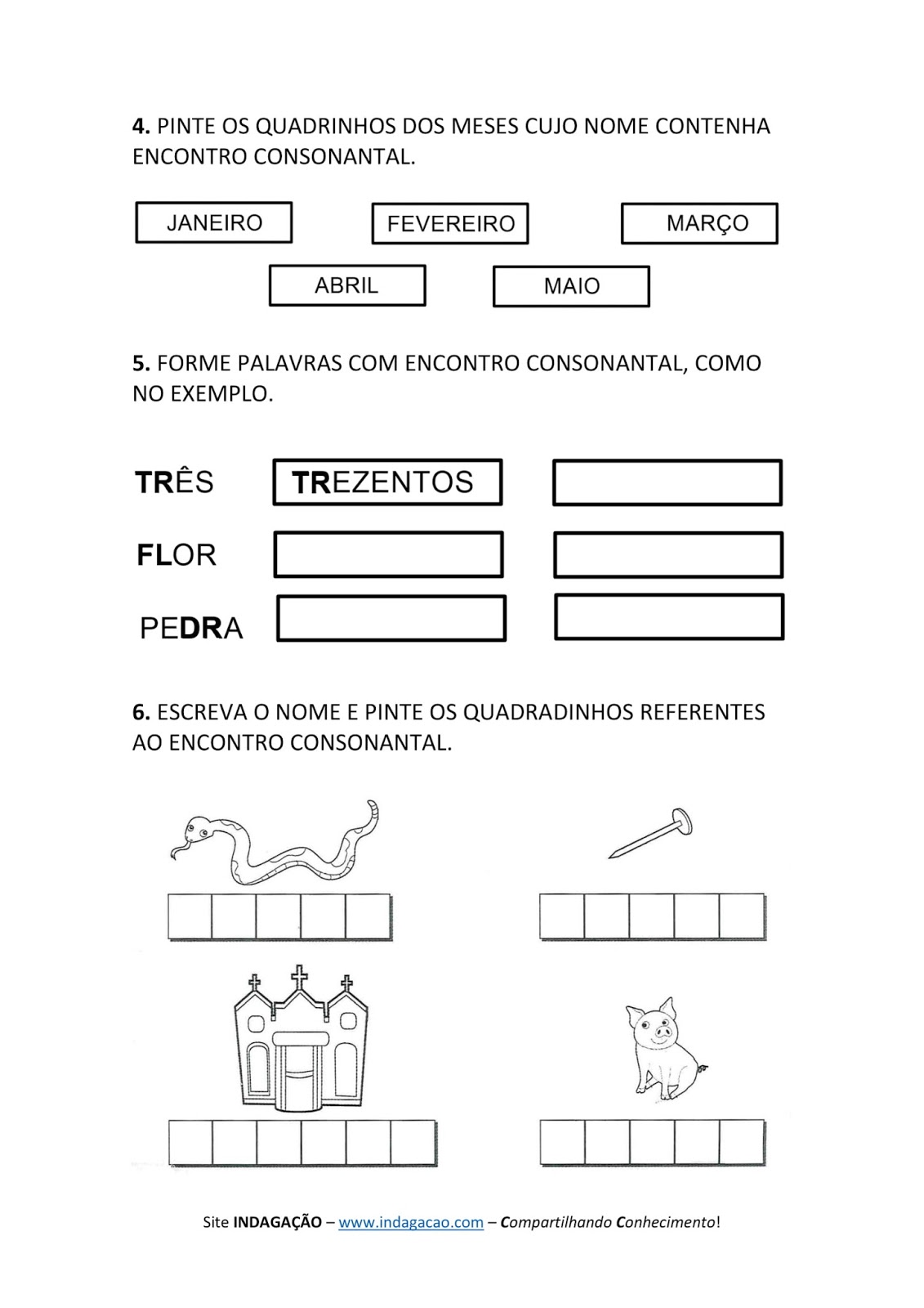 Atividade Encontro Consonantal 1º Ano 6 Questoes Indagacao