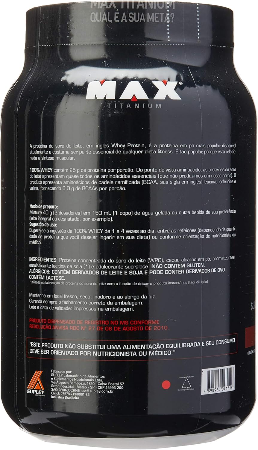 100 Whey Protein Chocolate Max Titanium 900 G Amazon Com Br
